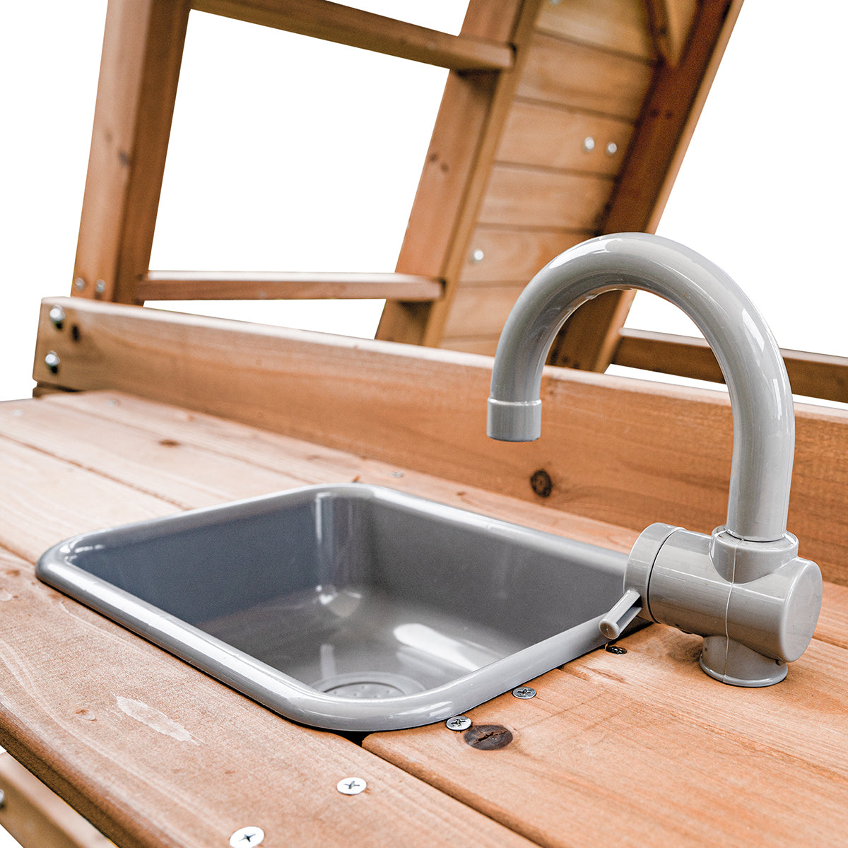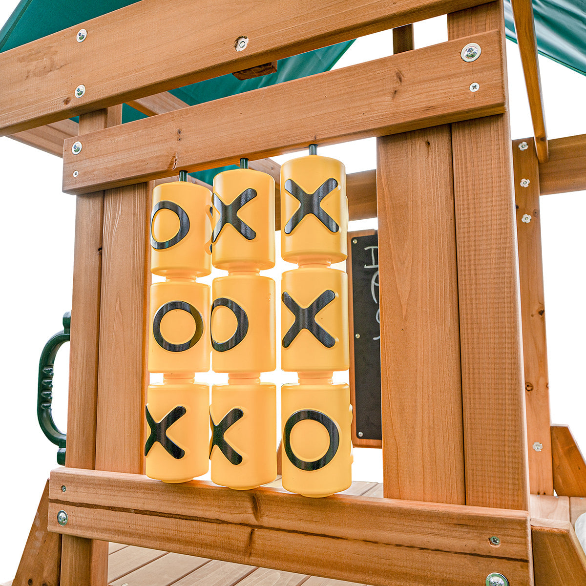 - 120cm high raised playhouse with noughts crosses, telescope chalkboard