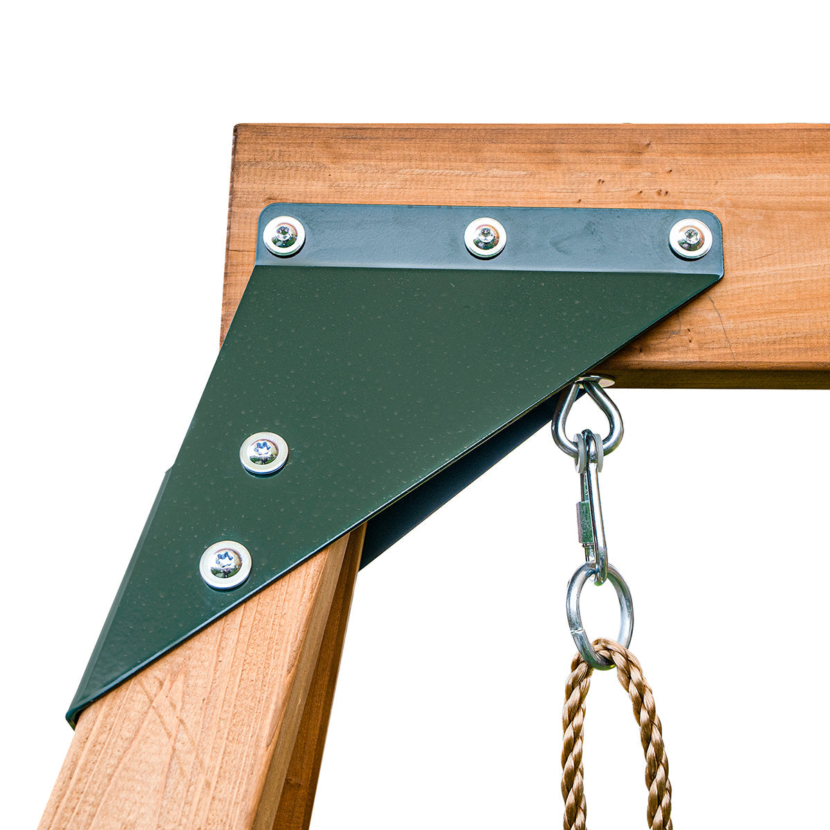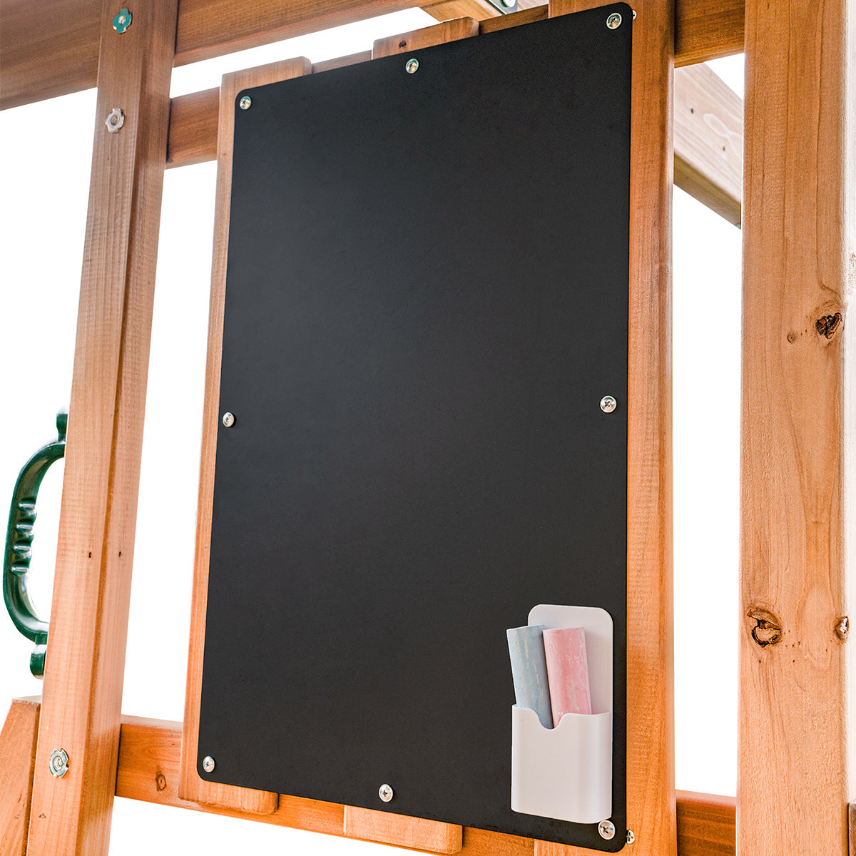 The Birmingham Play Centre Set is the ultimate backyard adventure for kids, offering more space and excitement than ever before. Kids can challenge themselves on the rock-climbing wall or easily access the play area via the sturdy ladder. The 3 Position Swing Beam comes equipped with two swings and a trapeze, giving your little ones endless options for a thrilling playtime. All Lifespan Kids products are built to last, with high-strength steel brackets featuring powder coating for maximum weather protection. The timber undergoes a high-temperature treatment, making it durable, resistant to rot and decay, and sustainably sourced to ensure a brighter future for your children.