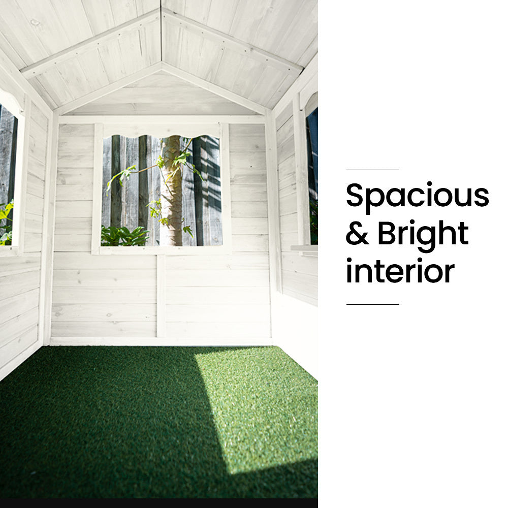 Join the global craze and truly make your mark on your Rovo Kids Cubby House - DIY style! Readily customisable, tap into your inner creativity - there are endless possibilities at your disposal! Create a dream castle for your own little royalty by painting and decorating their cubby with shades of white and gold, or create a home-business experience for your little ones serving you from their very own shop front! Mix and match your style to the season or holiday celebration; a pool house in summer or a winter wonderland log cabin complete with fairy lights. Unleash your imagination! With great design and curb appeal to start you off right, the choice is yours, and you can continue to customise your new Rovo Kids Wooden Cubby House as your child grows.